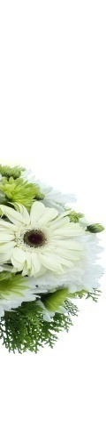 5 White Carnations, 3 White Roses, 2 White Gerbera, White Chrysanthemums, Green Chrysanthemums, 3 White Candles