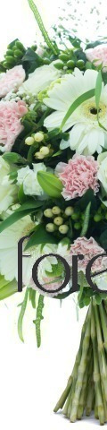 A floral arrangement for birthdays, new arrivals, romantic occasions, and get-well messages, our Strawberries & Cream arrangement is the perfect gift for life's most memorable moments. Simple yet beautiful, it includes 4 white gerberas, 3 white roses, 10 soft pink spray carnations, and a mix of lush green foliage.